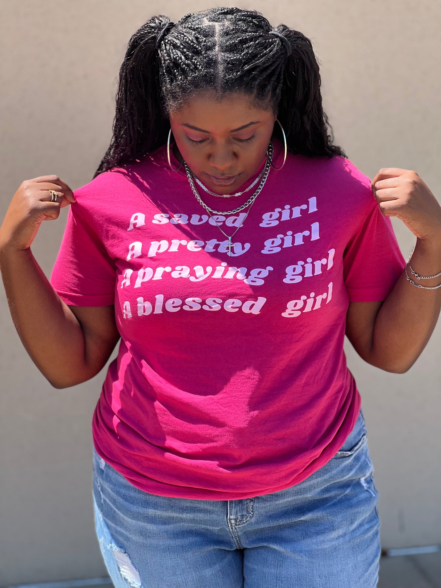 Our “ A Saved Girl “ T-Shirt features a pretty, praying and blessed girl design. Made with high-quality materials, this shirt expresses the importance of faith and empowerment. A perfect gift for any girl who is unapologetically confident and believes in the power of prayer.