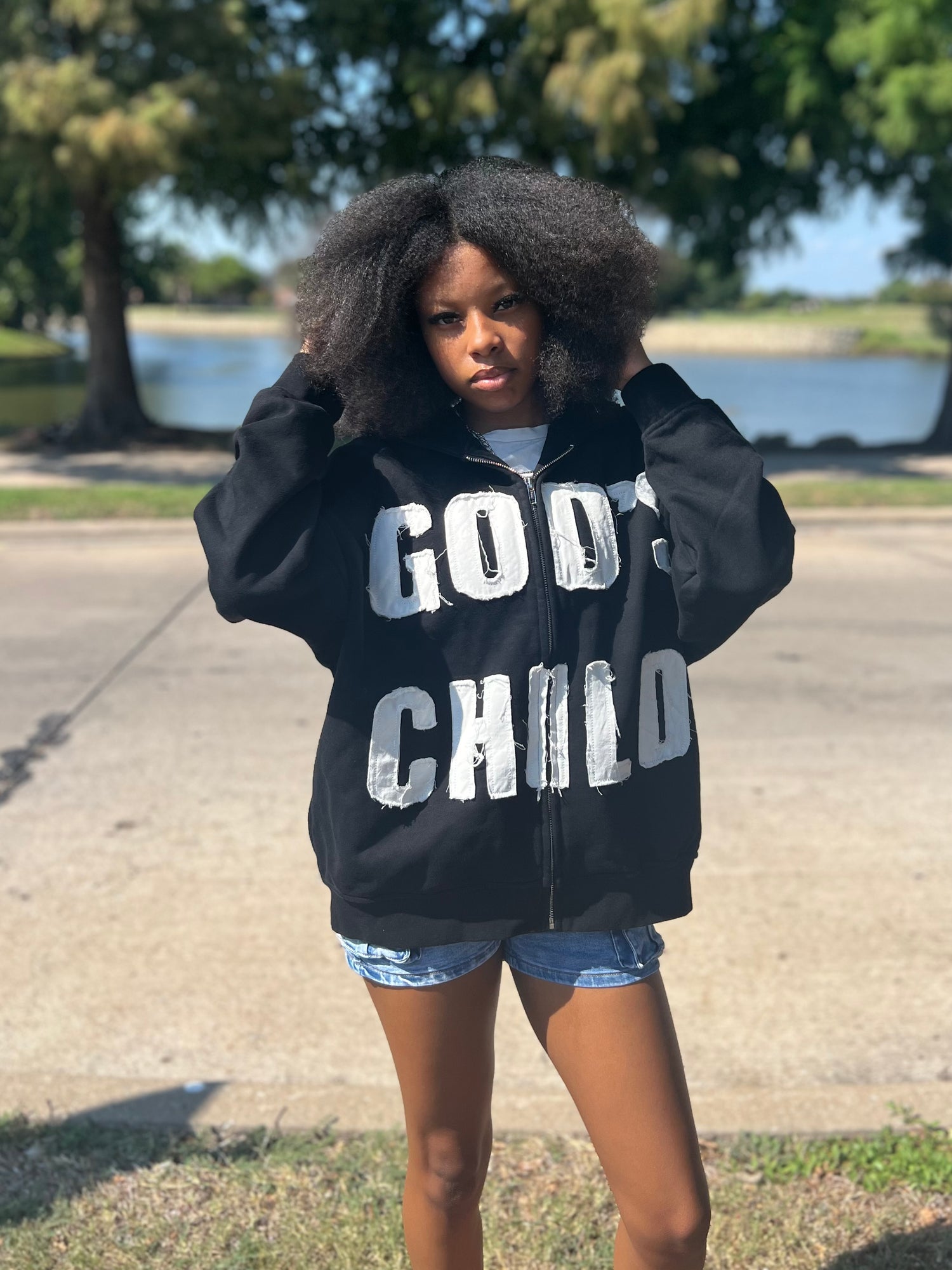 Embrace your faith boldly in our distressed God’s child jacket .