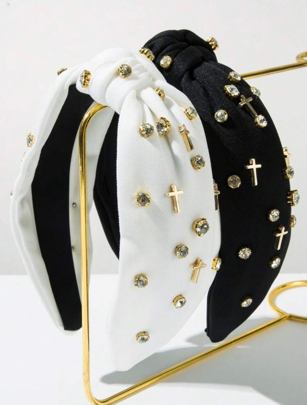 This stylish Cross Headband is adorned with a beautiful cross and sparkling jewels, adding a touch of elegance to any outfit. Crafted with comfort in mind, it provides a secure fit while keeping hair in place.